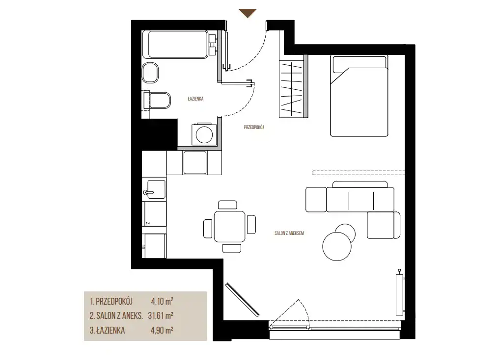 • Charakterystyka mieszkania 40.61 m2, 1 pokój