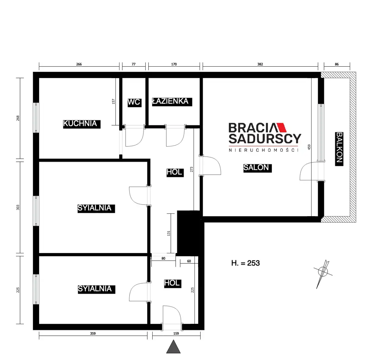 - Charakterystyka mieszkania 64.45 m2, 3 pokoje