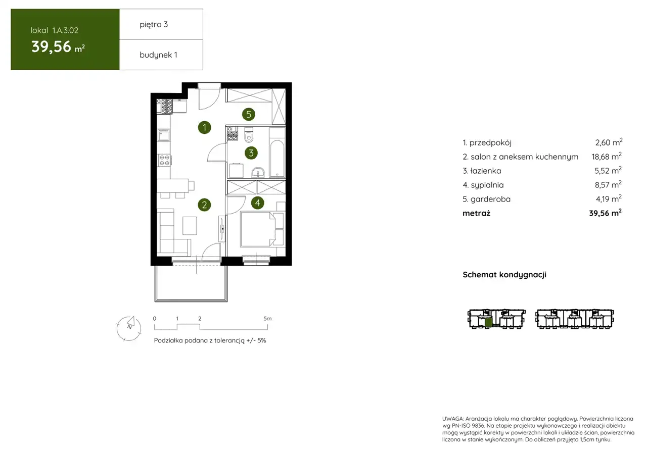 - Charakterystyka mieszkania 39.56 m2, 2 pokoje
