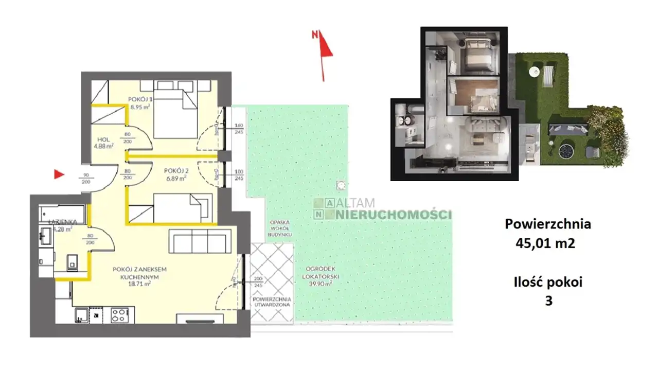 - Charakterystyka mieszkania 45.01 m2, 3 pokoje