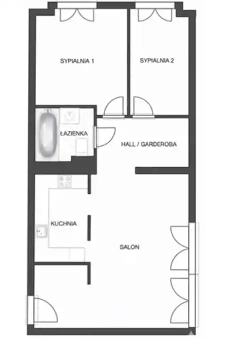 Mieszkanie składa się z salonu, kuchni osobnej, otwartej na salon, 2 sypialni, łazienki, przedpokoju. Do mieszkania przynależy piwnica.