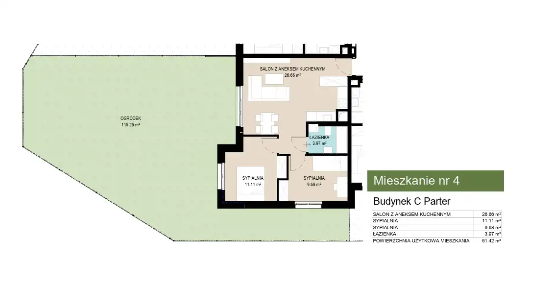 - Charakterystyka mieszkania 51.42 m2, 3 pokoje