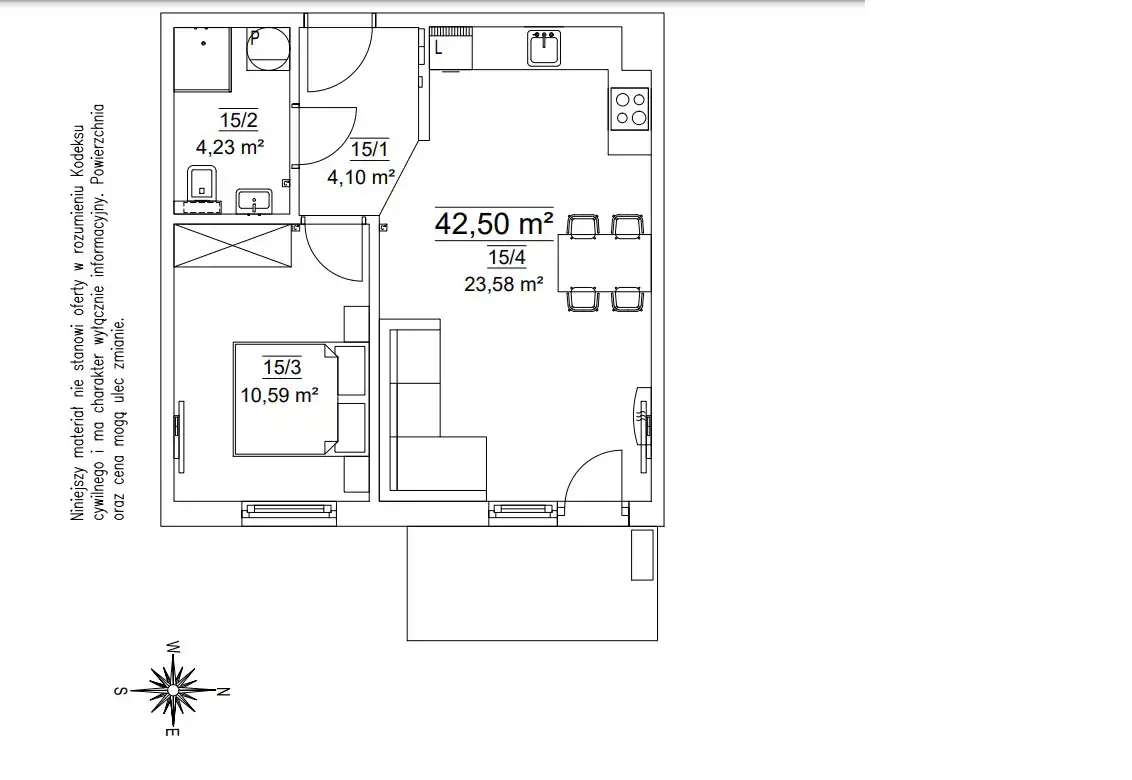 - Charakterystyka mieszkania 42.5 m2, 2 pokoje