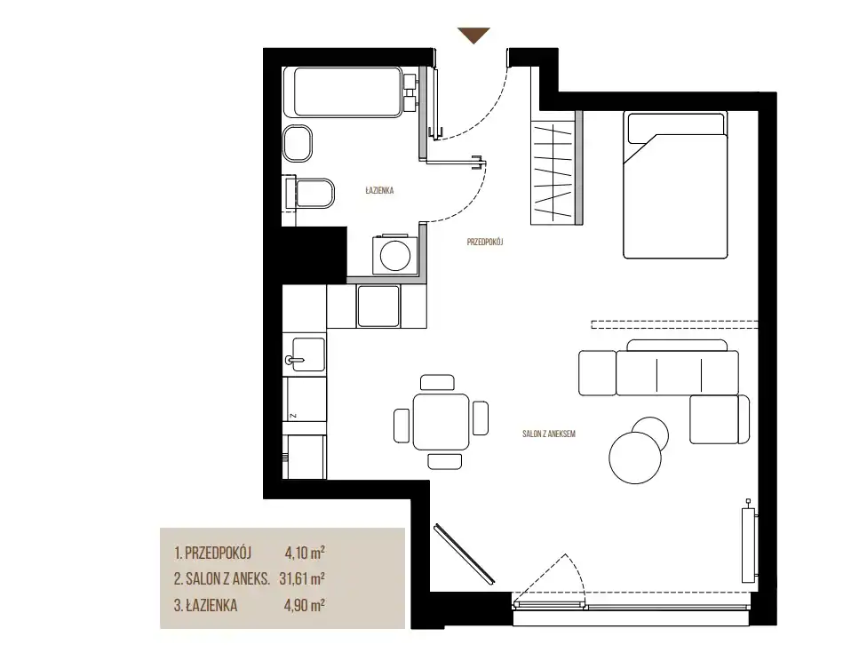 • Charakterystyka mieszkania 40.61 m2, 1 pokój