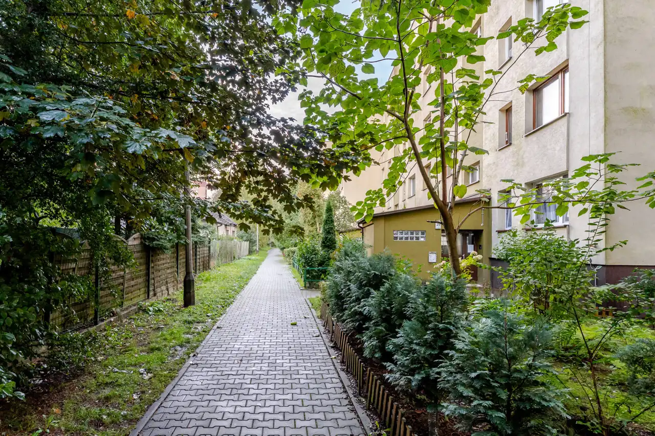 Blok jest położony w bardzo kameralnym osiedlu, otoczony zielenią, domkami jednorodzinnymi niskimi blokami. Okolica bardzo cicha i spokojna