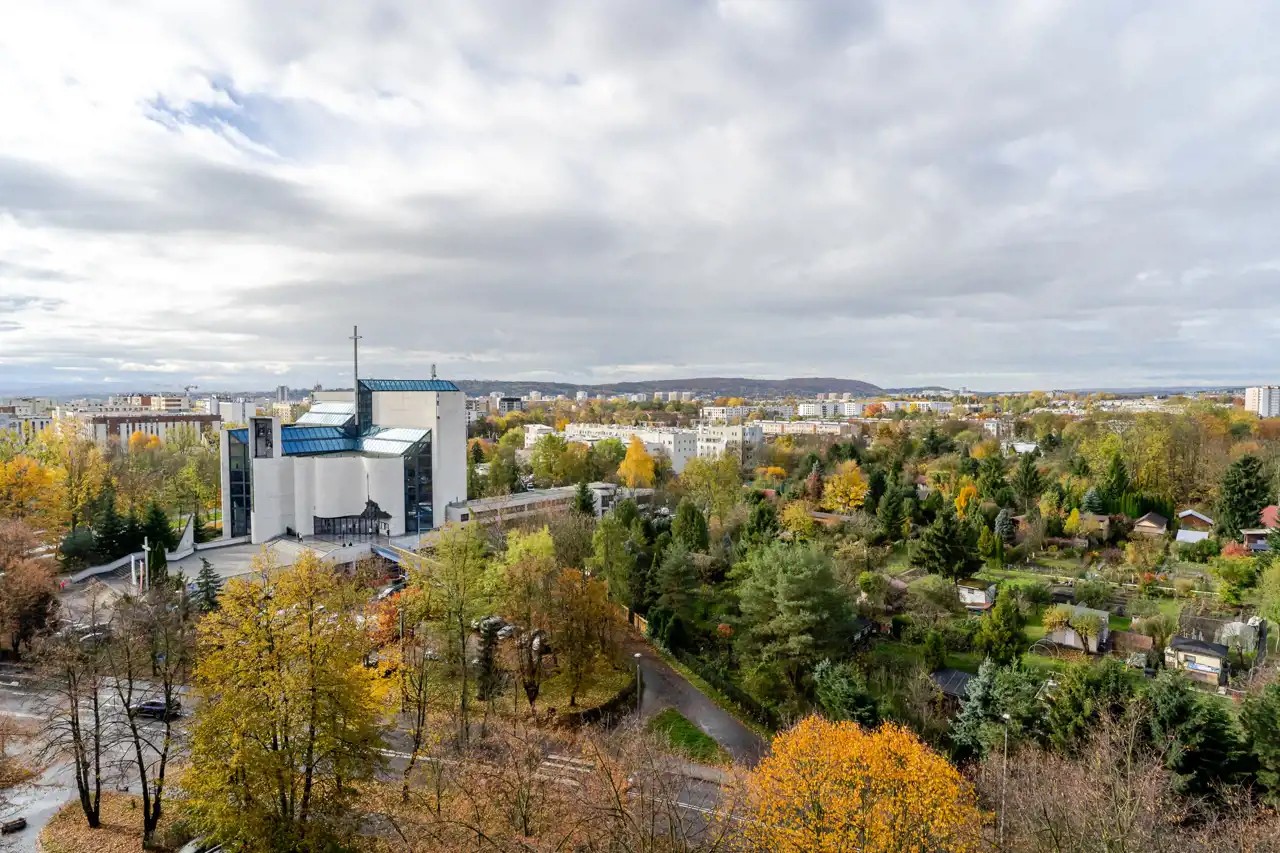 Znakomita okolica. Park im. Stanisława Wyspiańskiego oraz Park Krowoderski dostępne tuż po wyjściu z budynku. Ponadto osiedle jest pełne zieleni.