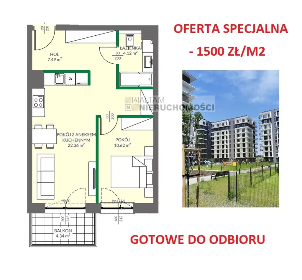 Przedmiotem sprzedaży jest 2-pokojowe mieszkanie z aneksem kuchennym o powierzchni projektowej 45,85 m² z balkonem zlokalizowane na II-piętrze (budynek 8-piętrowy, dostępne również inne kondygnacje). Cena zawiera VAT. Mieszkania oddawane są w standardzie deweloperskim+.