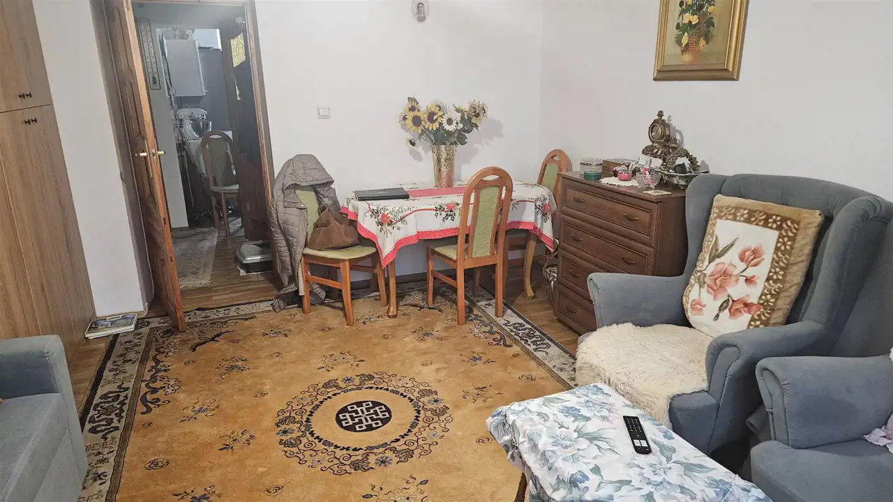 Mieszkanie do zamieszkania lub do odświeżenia, okna pcv, na podłogach w pokojach parkiet, w obu pokojach i w przedpokoju zabudowane szafy, garderoby, w kuchni nowe meble, sprzęt AGD, lodówka, zmywarka, pralka, suszarka.