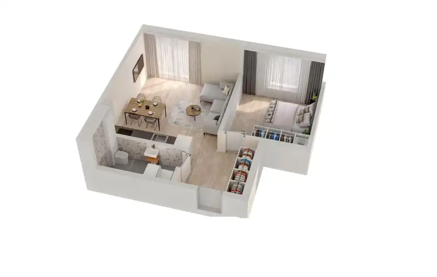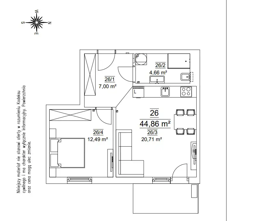 - Charakterystyka mieszkania 44.86 m2, 2 pokoje