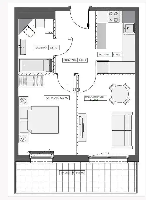 - Charakterystyka mieszkania 39.18 m2, 2 pokoje