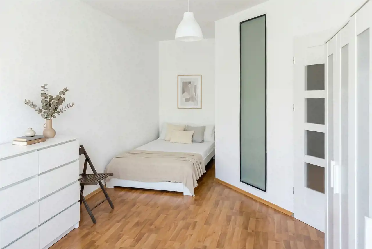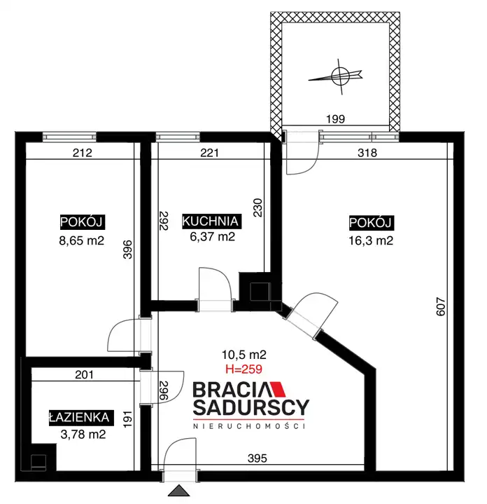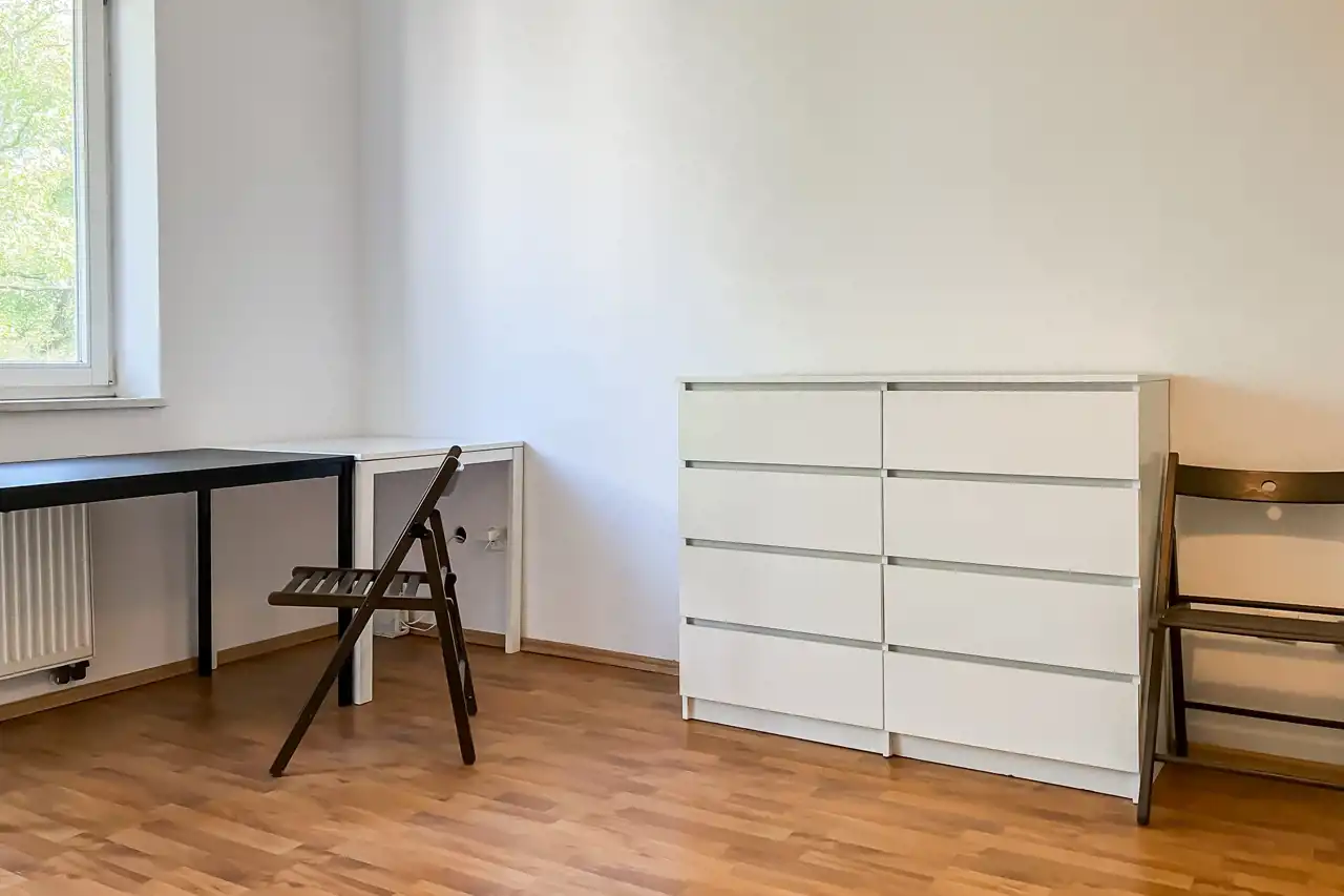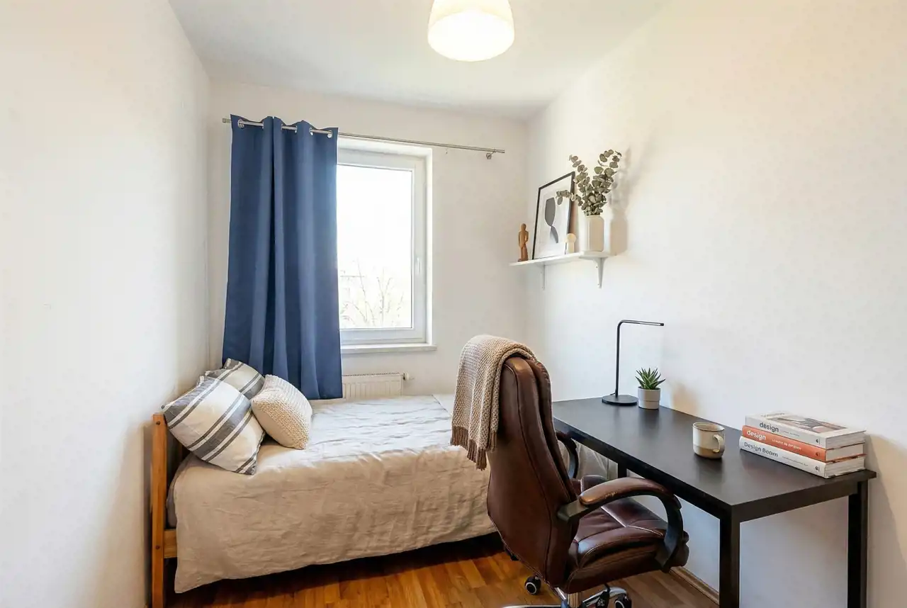 - dwa niezależne pokoje o pow. 8,6 i 16,3 m2