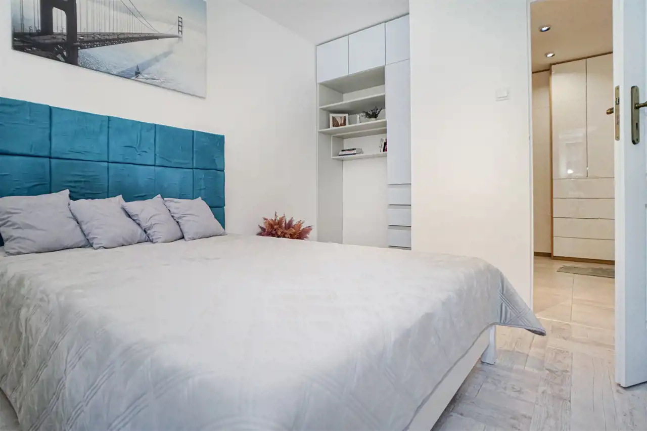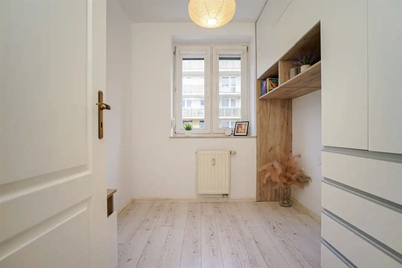 Dużym atutem nieruchomości jest świetnie zaplanowana przestrzeń do przechowywania – liczne szafy w zabudowie w sypialniach i przedpokoju pozwalają maksymalnie wykorzystać powierzchnię mieszkania i zachować porządek.