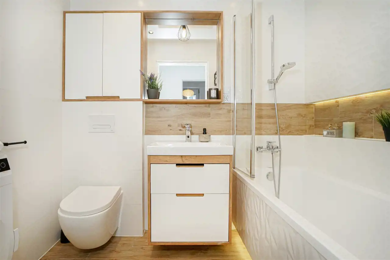 - nowoczesna łazienka z wanną,