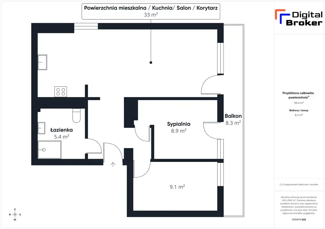 - Charakterystyka mieszkania 56.79 m2, 3 pokoje