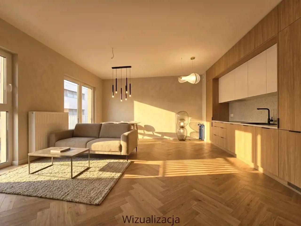 Mieszkanie wyróżnia się bardzo funkcjonalnym układem, który daje szerokie możliwości aranżacyjne – zarówno dla rodziny, jak i pod wynajem. Duże przeszklenia oraz zachodnia ekspozycja zapewniają dobre doświetlenie wnętrz przez cały dzień, a dwa balkony stanowią realną, dodatkową przestrzeń do wypoczynku.