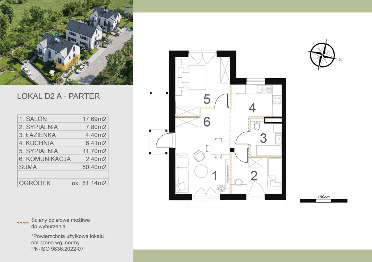- Charakterystyka mieszkania 50.4 m2, 3 pokoje