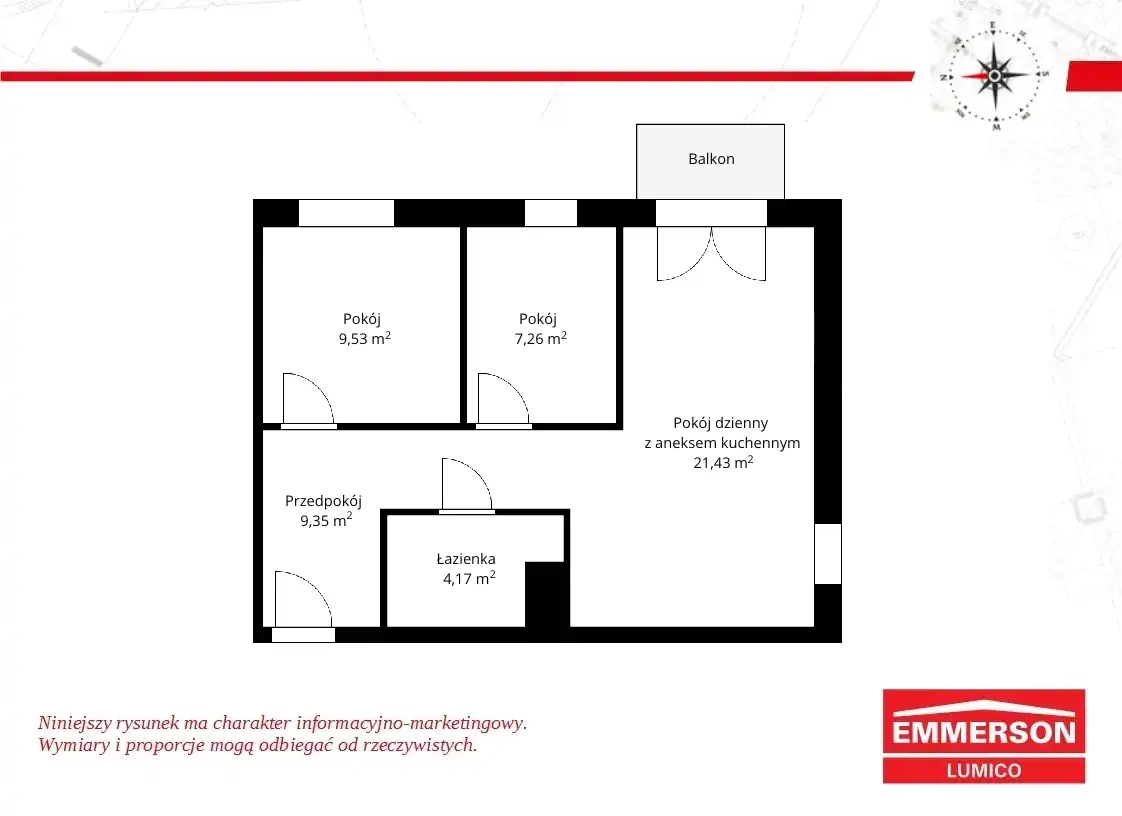 - Charakterystyka mieszkania 52.92 m2, 3 pokoje