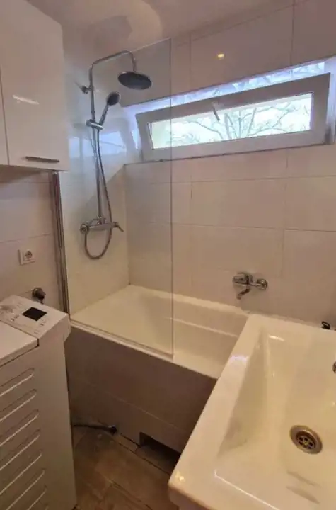 - Łazienka z oknem po remoncie, w pełni wyposażona: wanna z prysznicem, pralka,