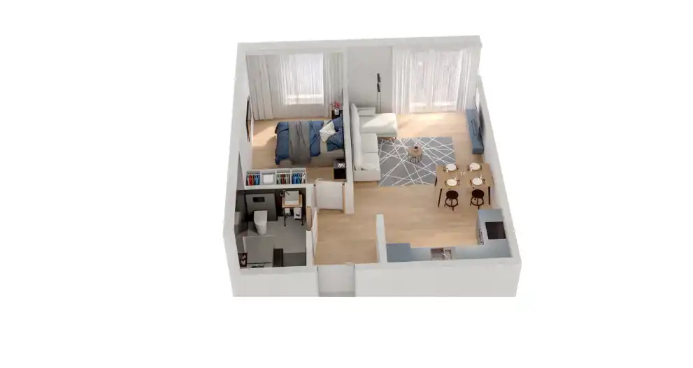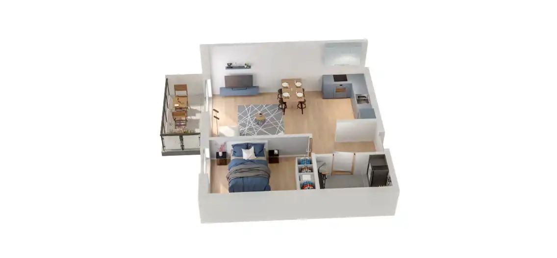 - Charakterystyka mieszkania 42.69 m2, 2 pokoje