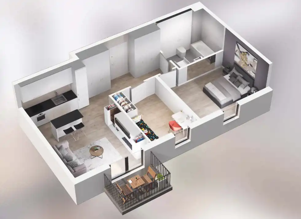 1, 2, 3 i 4-pokojowe mieszkania, o metrażach od 30,81 m² do 82,37 m², idealnie dopasowane do potrzeb singli, par, jak i rodzin.