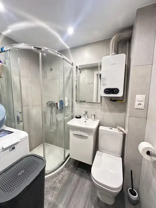 - Media Ogrzewanie: C.O. miejskie; Woda: ciepła - piecyk gazowy