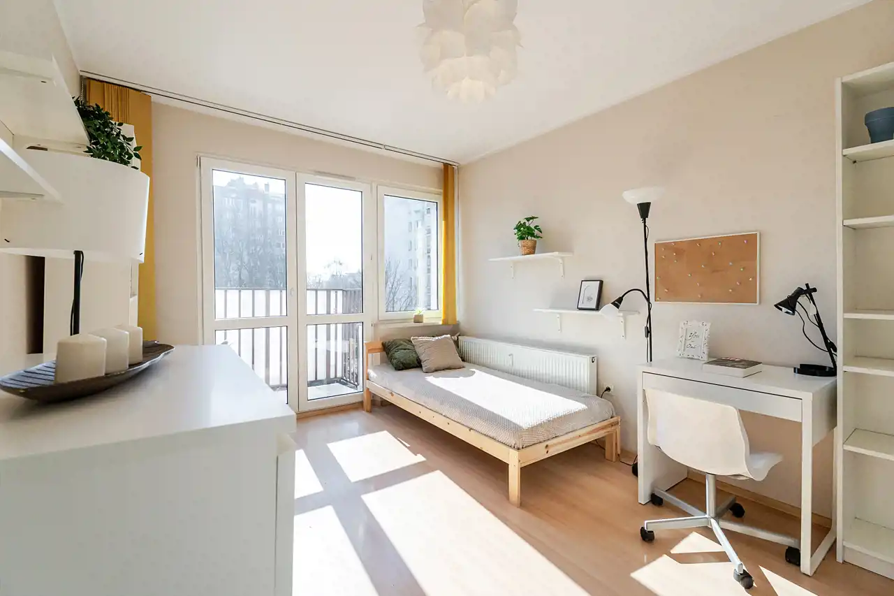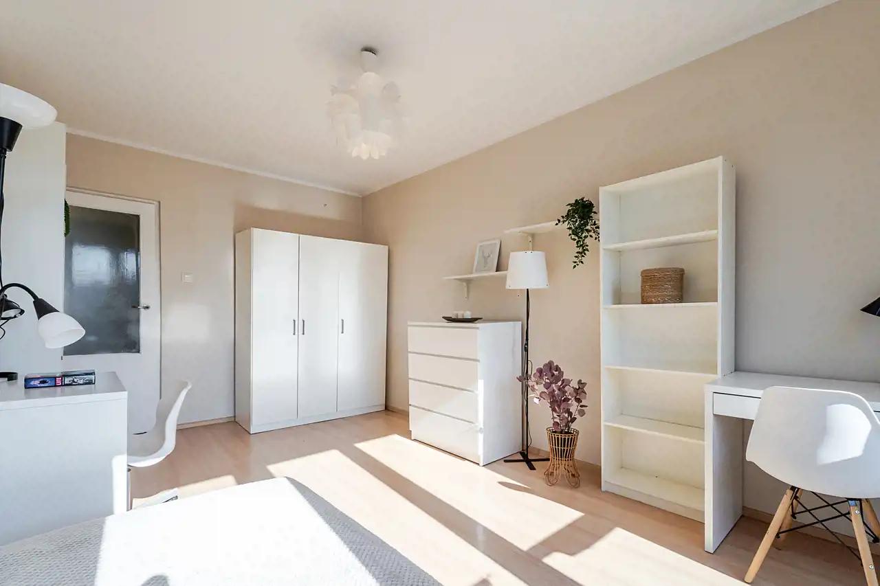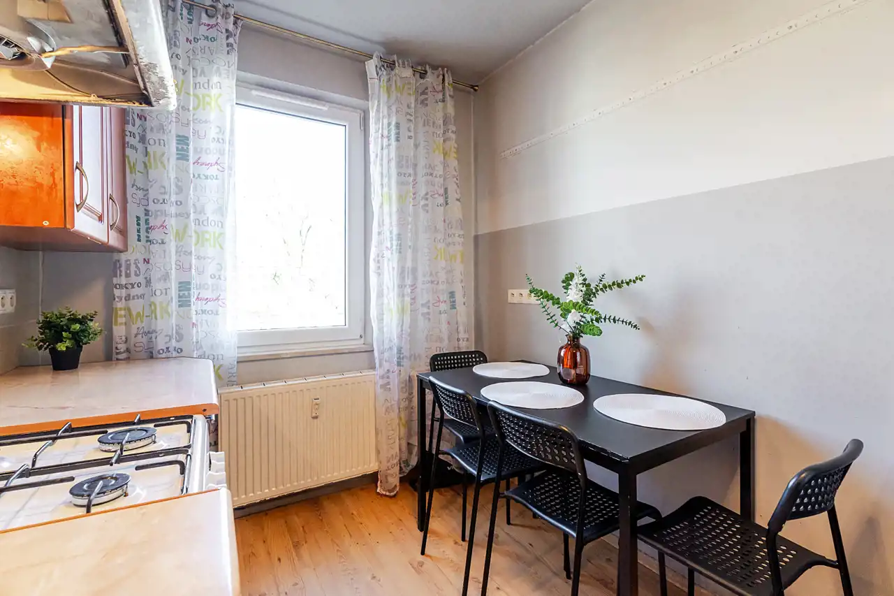 Prezentowane mieszkanie o pow. 45,7 m2 przy ul. Słomianej to propozycja dla osób, które szukają mieszkania do remontu, ale z potencjałem. Przestrzeni, którą można urządzić dokładnie tak, jak się chce, w jednej z najbardziej pożądanych lokalizacji w Krakowie - na os. Podwawelskim. Czwarte piętro bez windy sprawia, że to oferta dla osób aktywnych, ale w zamian daje światło i widok z balkonu na osiedlową zieleń, którego nie zasłania żaden budynek.