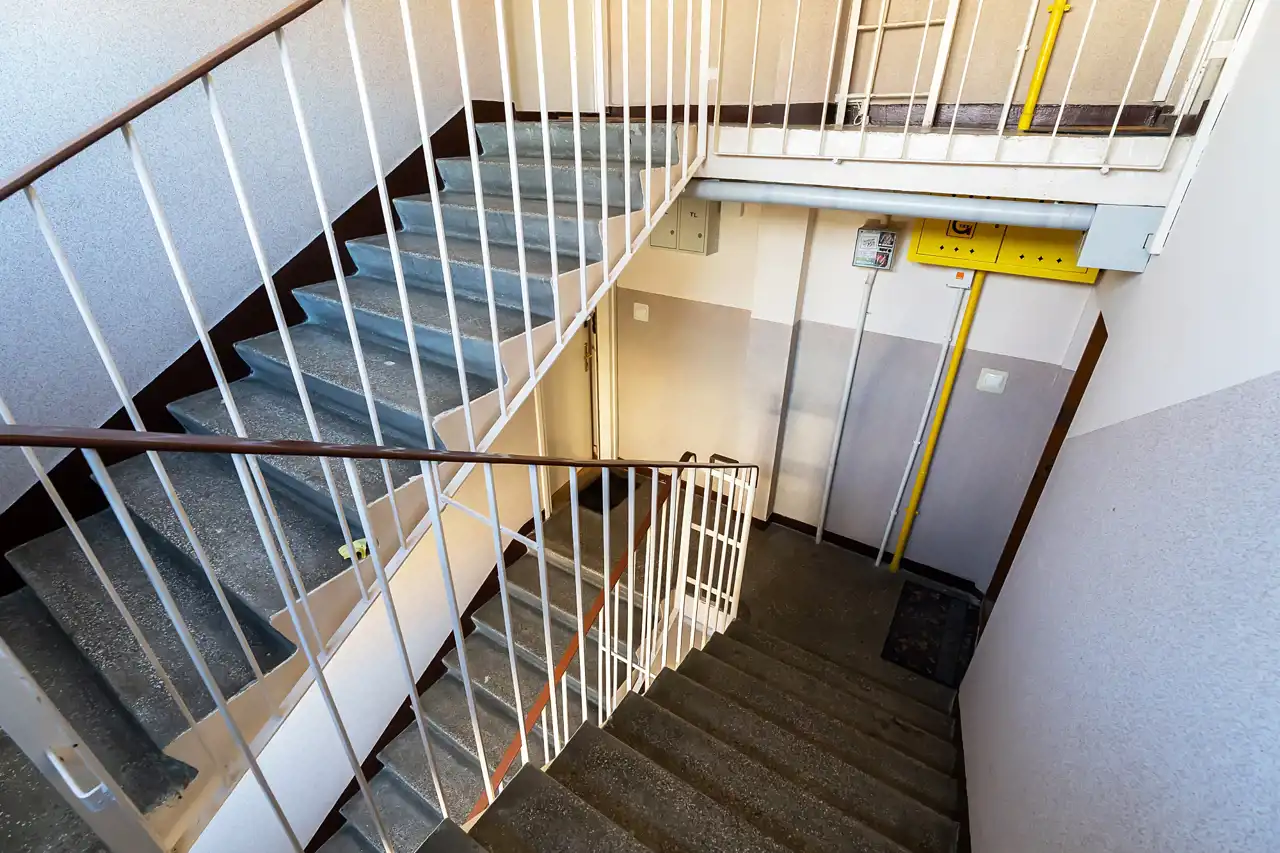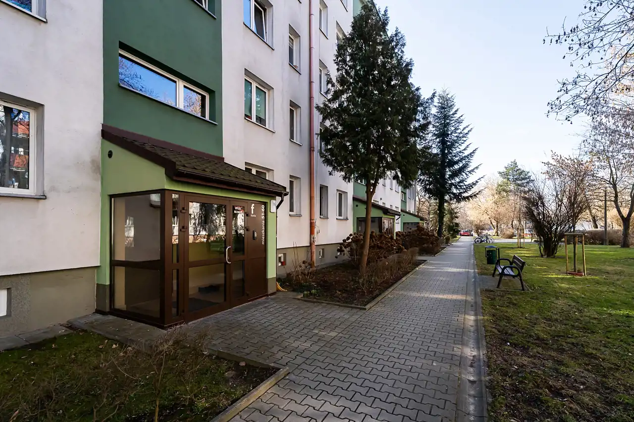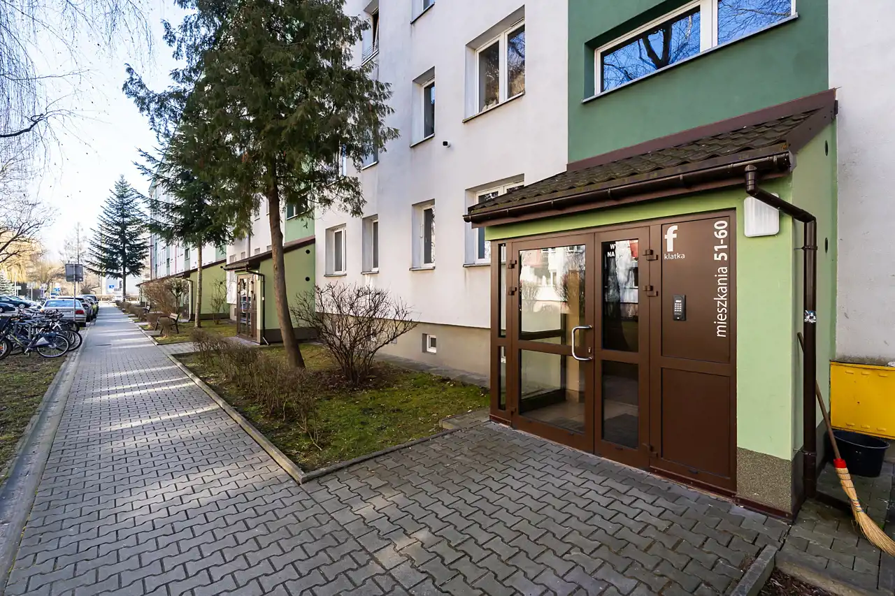 Blok przeszedł odświeżenie elewacji i klatki schodowej, dzięki czemu prezentuje się schludnie. Teren wokół jest otoczony zielenią osiedlową, a miejsca parkingowe za szlabanem dostępne są wyłącznie dla mieszkańców. Do mieszkania przynależy także piwnica o powierzchni 5 m² – idealna na rowery, sprzęt sportowy czy sezonowe rzeczy.
