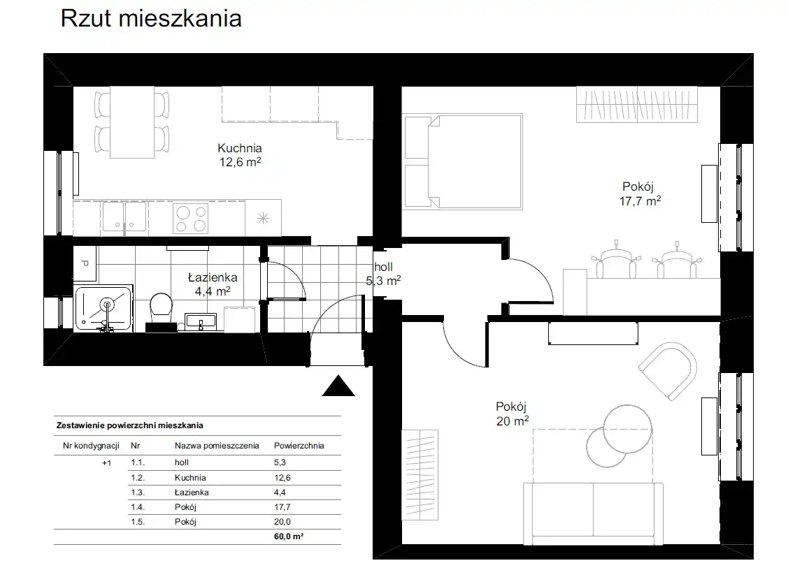 - Charakterystyka mieszkania 60 m2, 2 pokoje