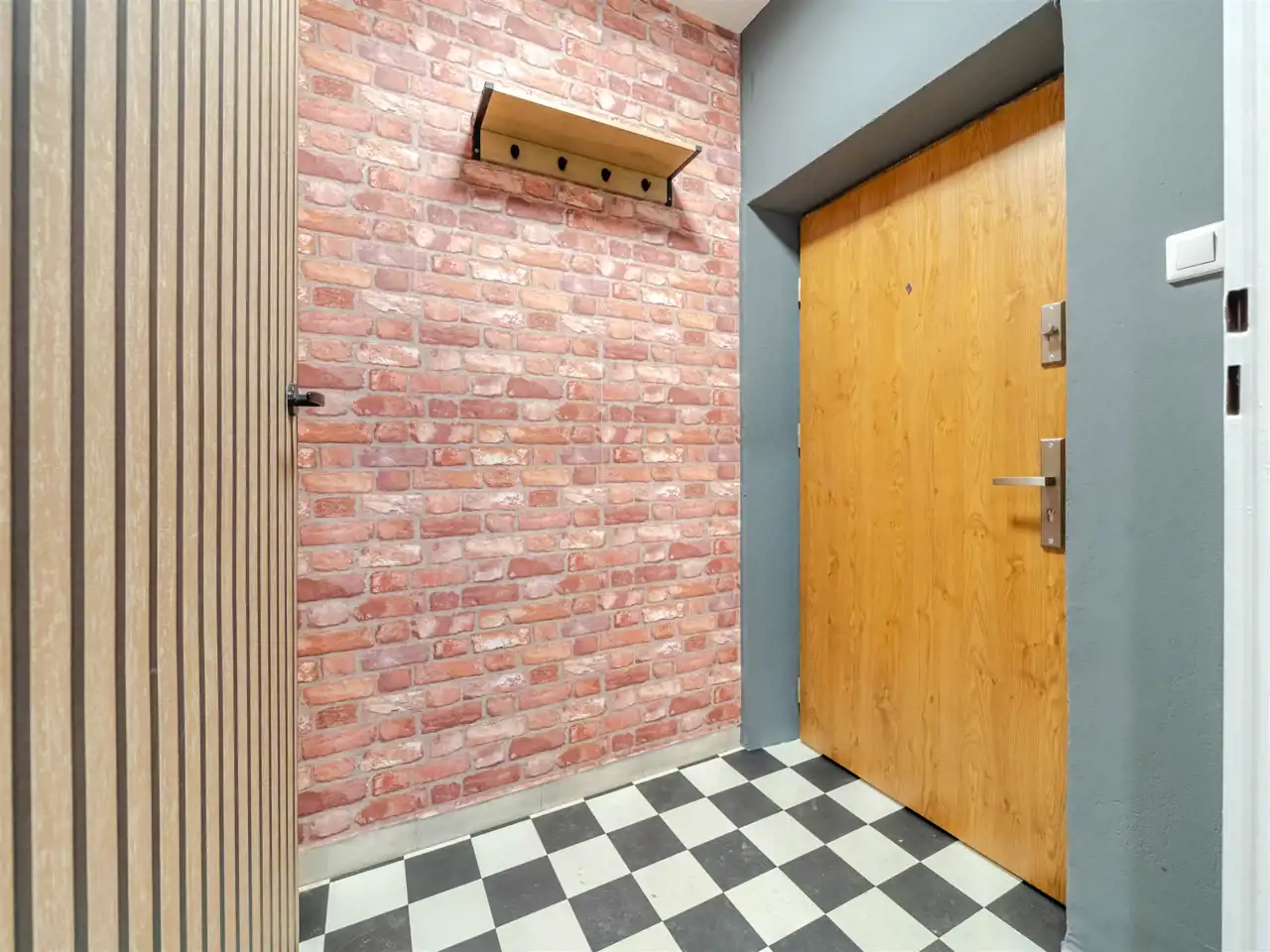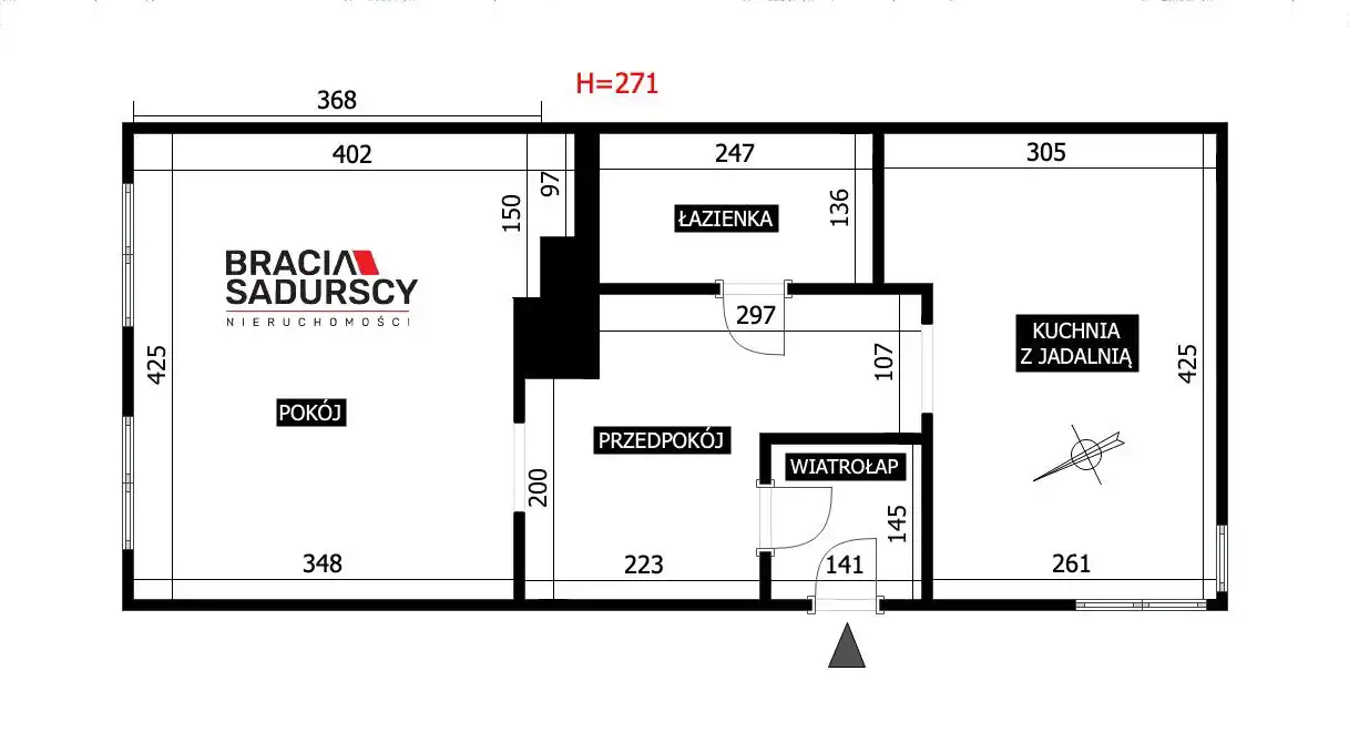 Mieszkanie położone jest na parterze. Jest układ pozwala na wyodrębnienie osobnej sypialni, z racji bardzo dużej kuchni i możliwości przeniesienia kuchni do salonu. Można również wyburzyć ścianę działową między salonem a przedpokojem zyskując ponad 3 metry kwadratowe do powierzchni pokoju dziennego. Obecnie pokój ma około 16,1 m2. Metraż całego mieszkania to 41m2. Dodatkowo jest piwnica: 3,60 m2.