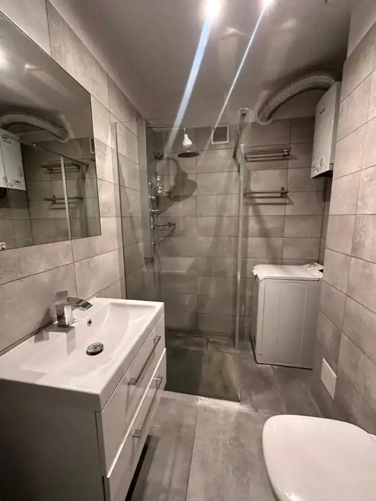 - Media Ogrzewanie: C.O. miejskie; Woda: ciepła - piecyk gazowy
