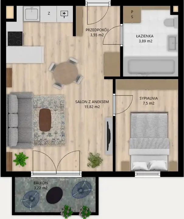 - Charakterystyka mieszkania 30.76 m2, 1 pokój