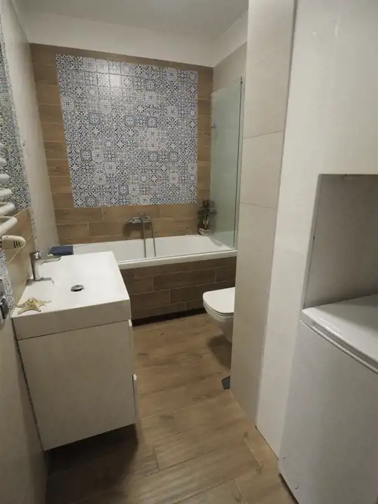 - salon z aneksem kuchennym, sypialnia, łazienka wanną i toaletą, przedpokój