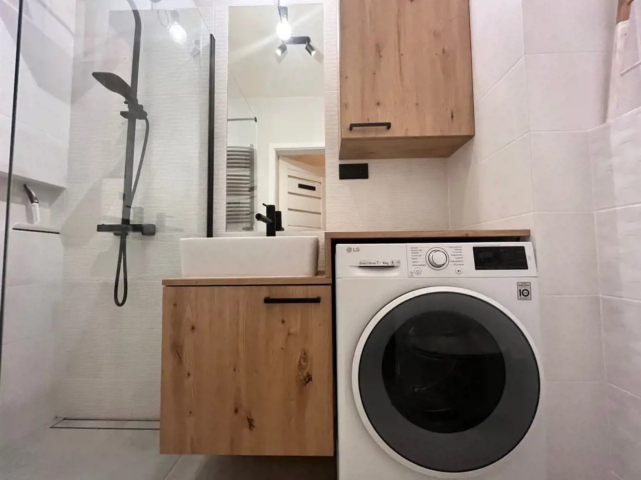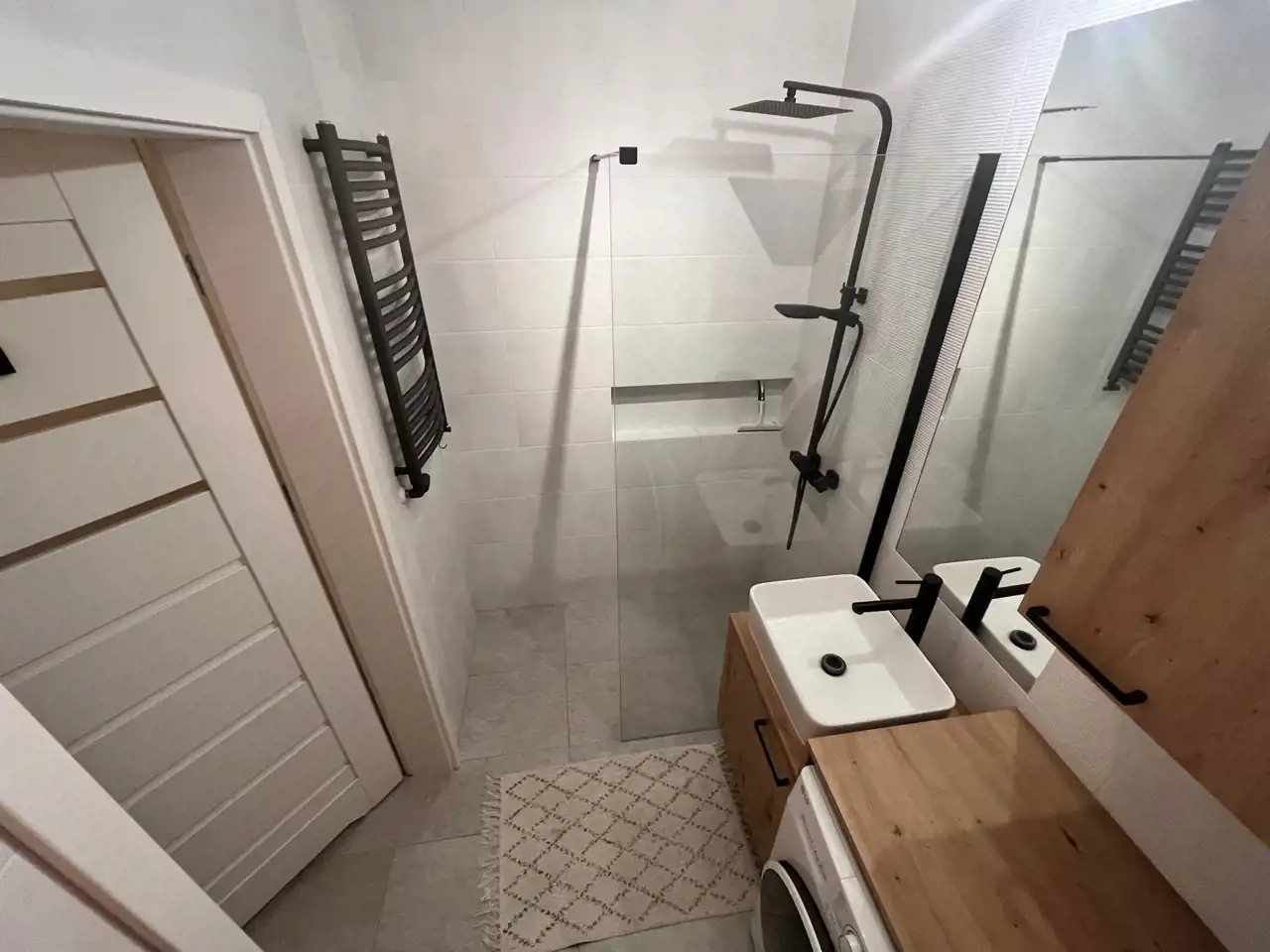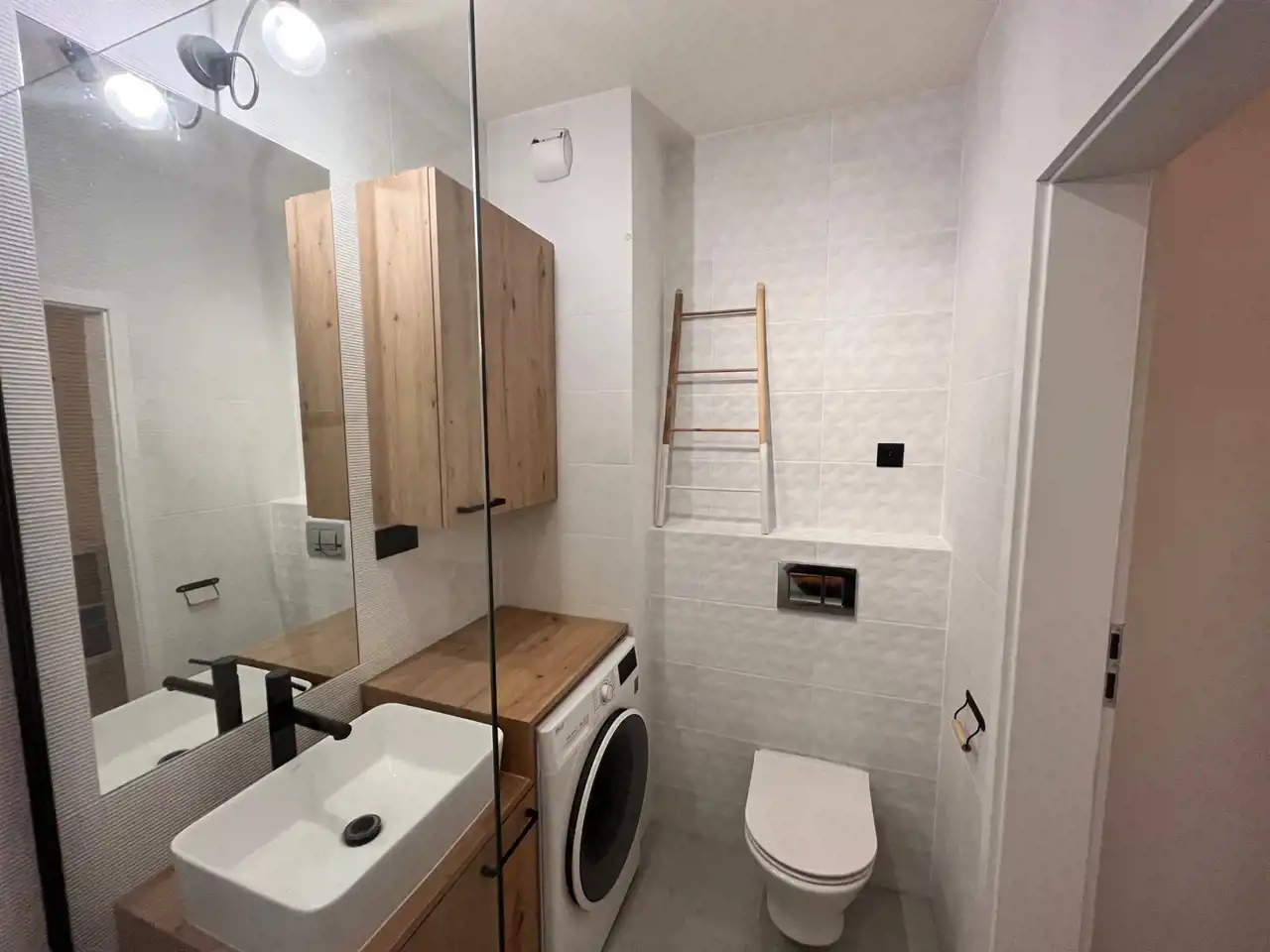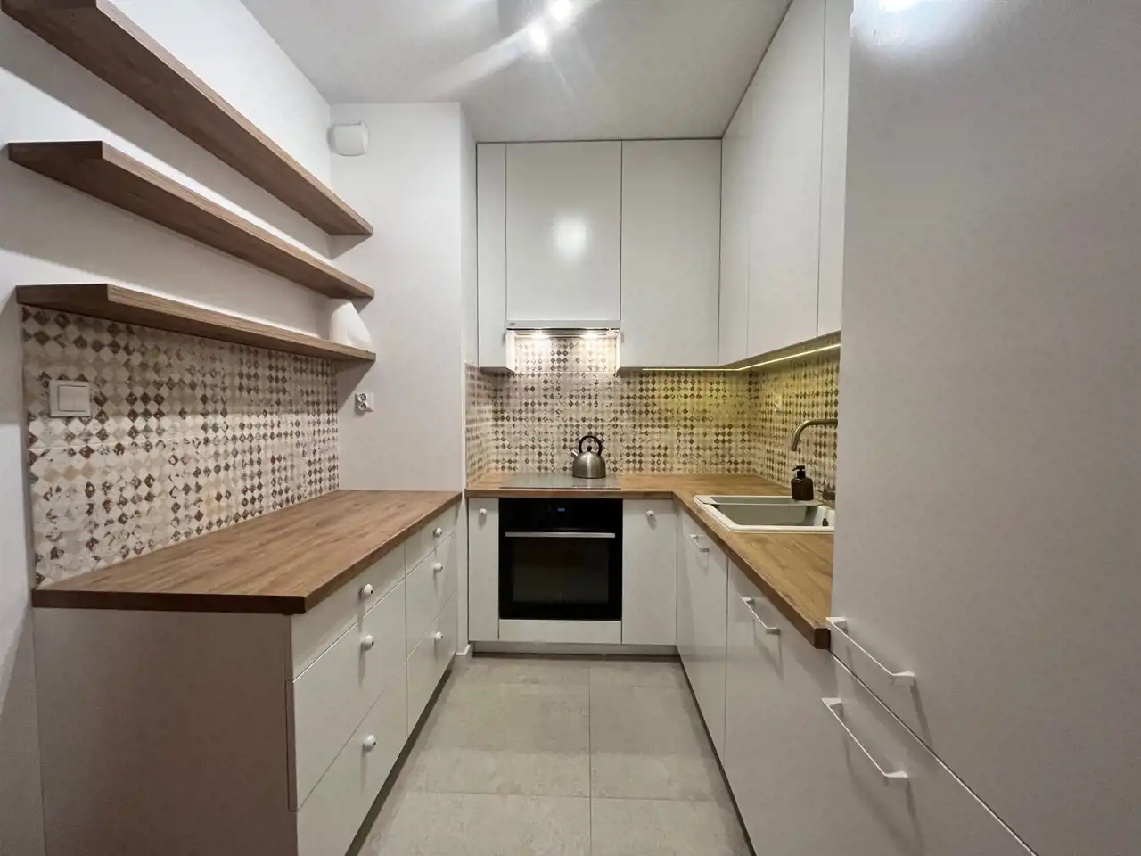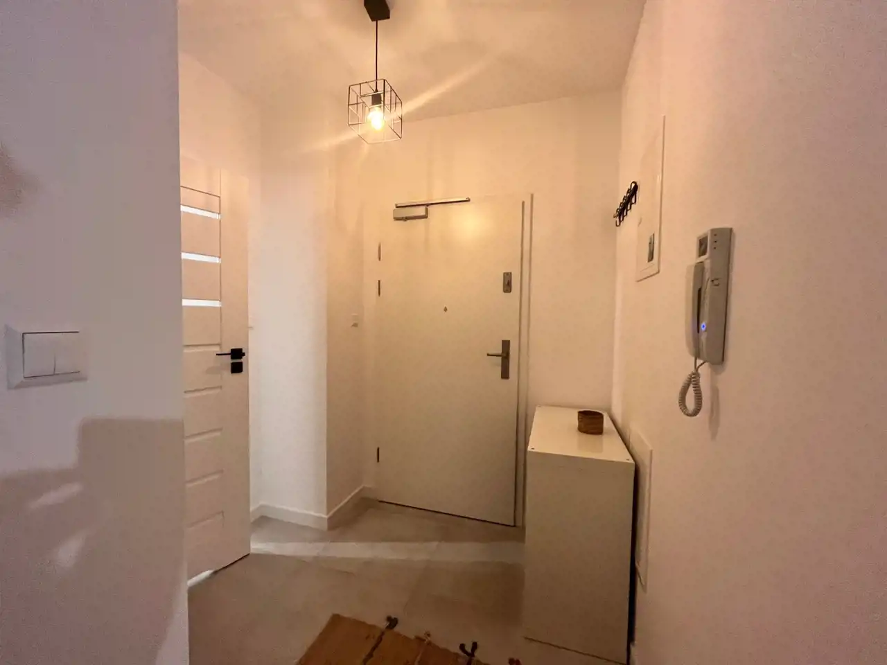 Mieszkanie w pełni umeblowane - w przedpokoju szafa, w kuchni meble w zabudowie oraz niezbędny sprzet AGD - chłodziarko zamrażarka, zmywarka, piekarnik, płyta. W salonie szafka rtv, rozkładana sofa. Sypialnia wyposażona w dużą szafę oraz łożko 140x200. W łazience duzy prysznic, pralko-suszarka. Mieszkanie starannie wykończone z stonowanych barwach. Ogrzewanie miejskie.