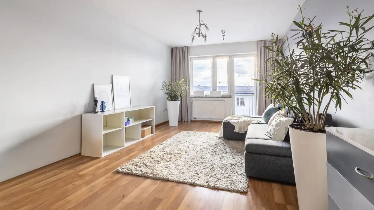 Ekspozycja okien na północ i południe sprawia, że mieszkanie jest bardzo jasne i słoneczne. Z obydwu stron jest ładny widok na zieleń: od północy na park wokół fortu, od południa na dachy budynków.