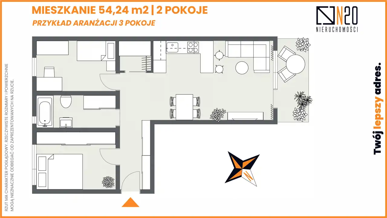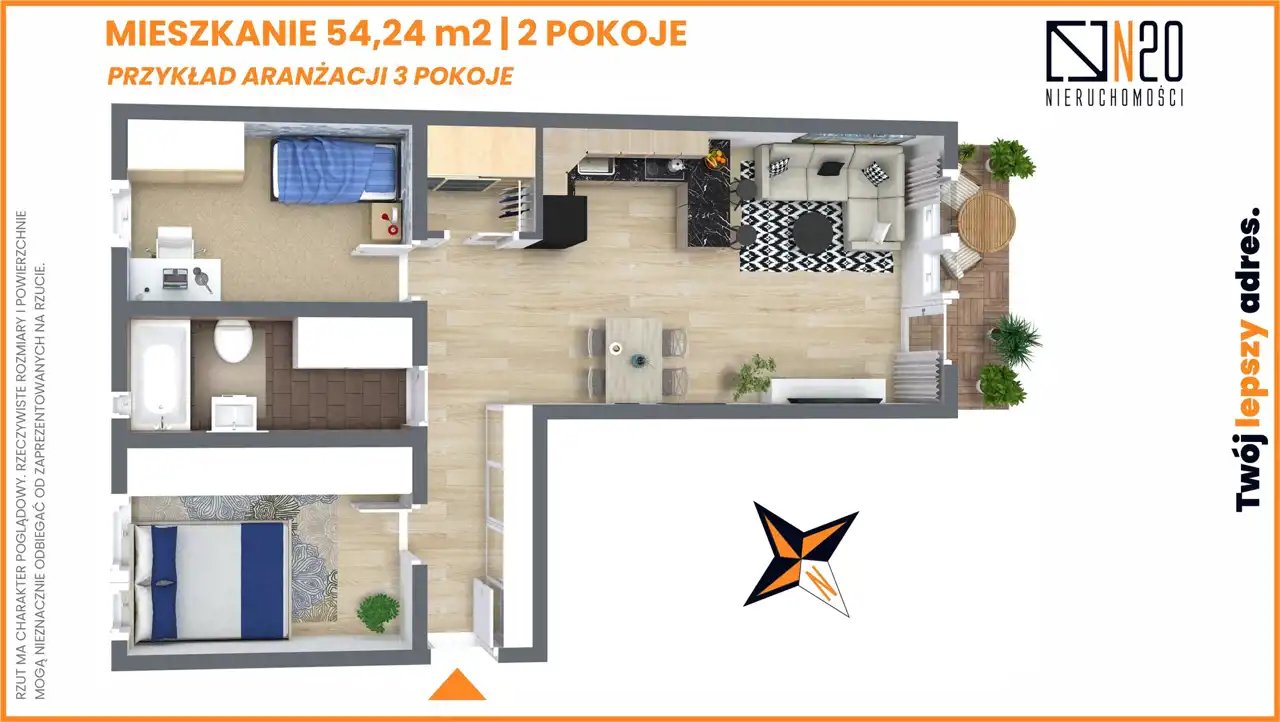 - Charakterystyka mieszkania 54.24 m2, 3 pokoje