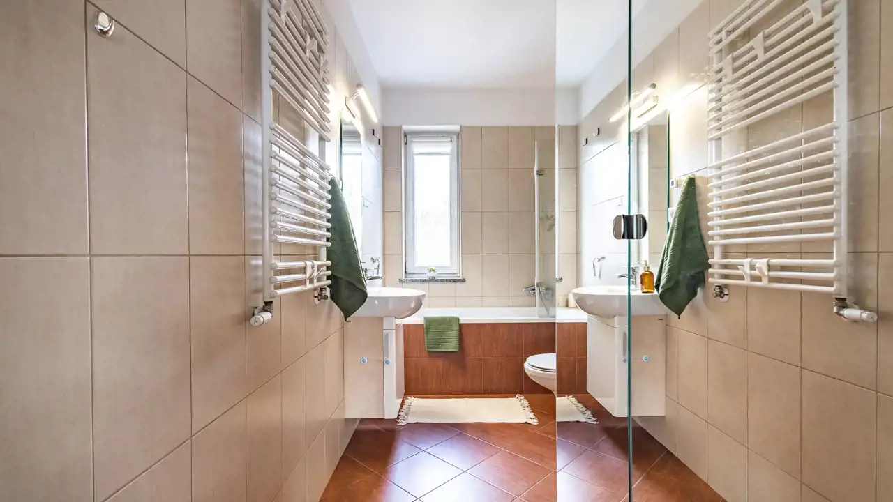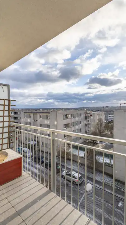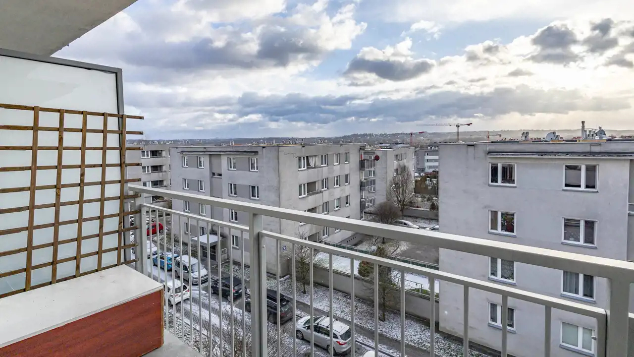 Ekspozycja okien na północ i południe sprawia, że mieszkanie jest bardzo jasne i słoneczne. Z obydwu stron jest ładny widok na zieleń: od północy na park wokół fortu, od południa na dachy budynków.