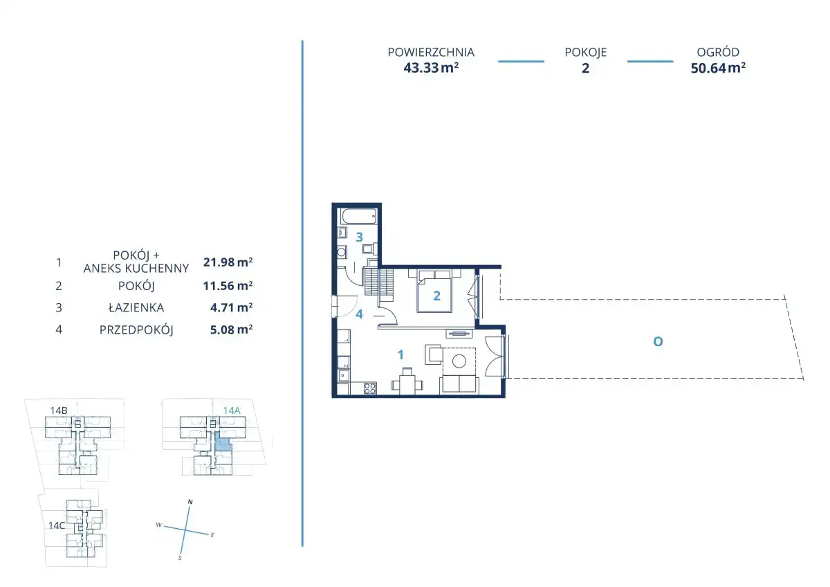 - Charakterystyka mieszkania 43.67 m2, 2 pokoje