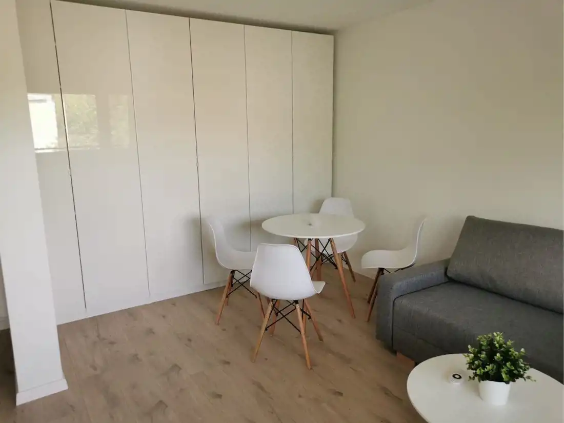 Wnętrze zostało wyremontowane włącznie z wymianą instalacji elektrycznej i wodno-kanalizacyjnej, dzięki czemu jest gotowe do zamieszkania od zaraz. Mieszkanie składa się z dużego salonu lub sypialni z balkonem, funkcjonalnego salonu z aneksem kuchennym, przedpokoju oraz łazienki. Do lokalu przynależy również piwnica, zapewniając dodatkowe miejsce do przechowywania.
