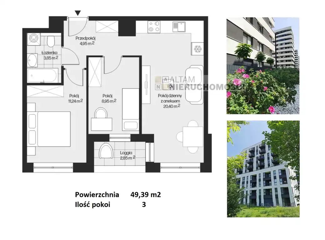 - Charakterystyka mieszkania 49.39 m2, 3 pokoje