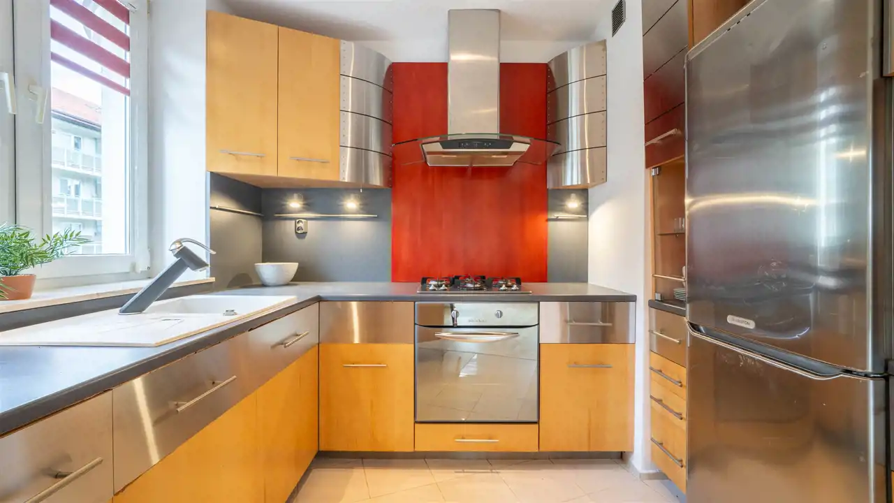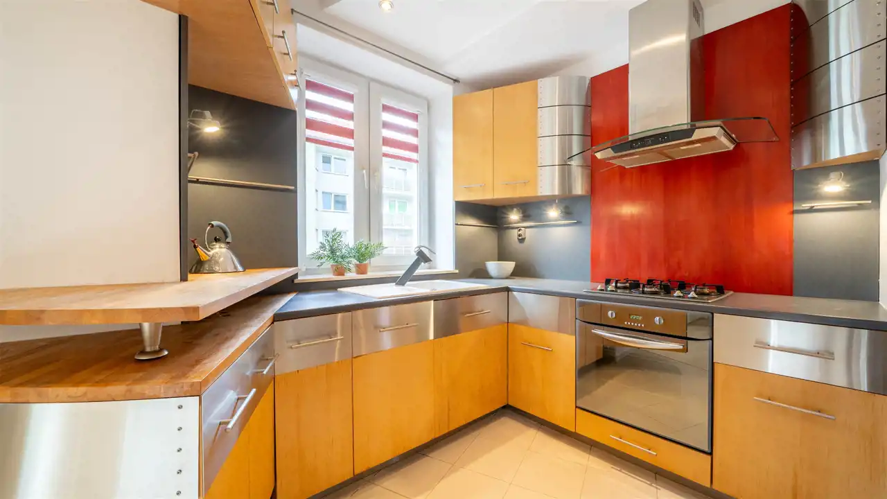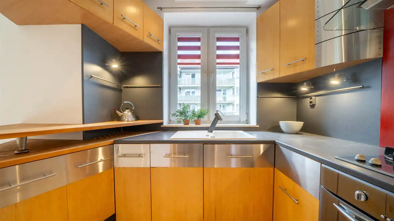 Kuchnia z bardzo ładną zabudową wykonaną na zamówienie.