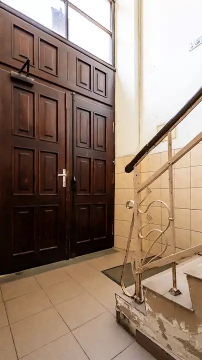 Znajduje się na wysokim parterze w 3 piętrowej kamienicy z 1910 roku. Składa się z kuchni, 1 pokoju, łazienki, toalety, przedpokoju i antresoli. Do mieszkania przynależy piwnica i schowek pod schodami przed wejściem do mieszkania. Przestrzeń z prywatnością budynku stanowi dziedziniec.