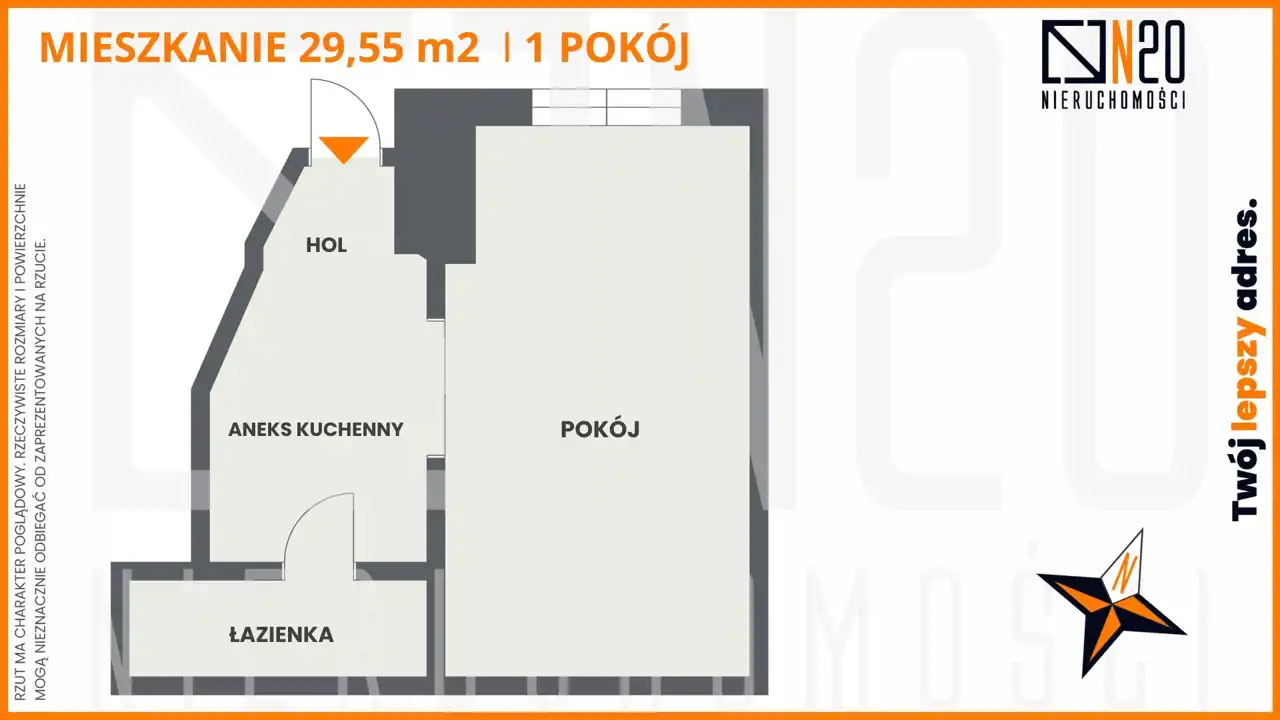 - Charakterystyka mieszkania 29.55 m2, 1 pokój