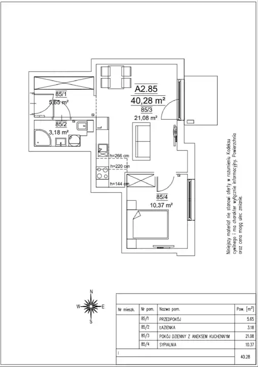 - Charakterystyka mieszkania 40.28 m2, 2 pokoje