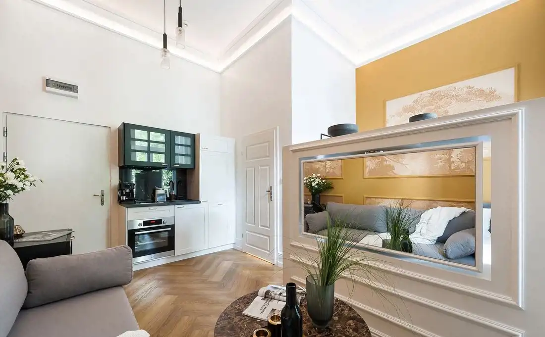 - Wysokie sufity (ponad 3 m) podkreślające przestronność i luksusowy charakter