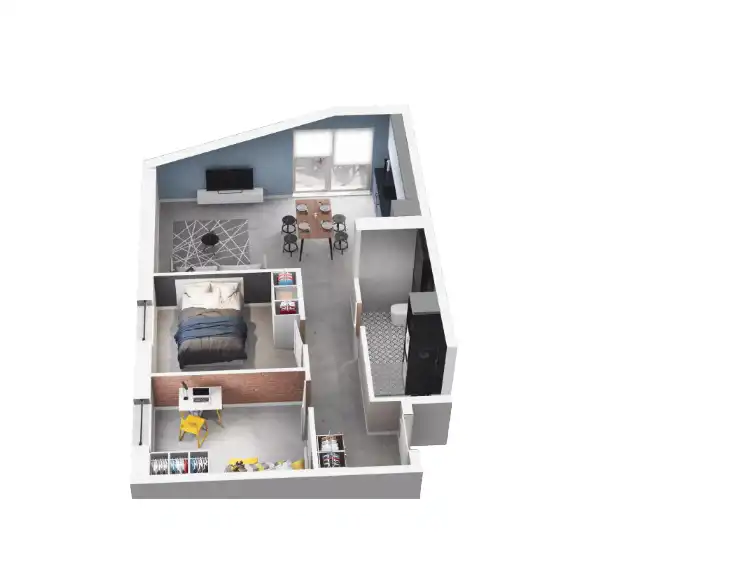 - Mieszkanie posiada skosy w salonie