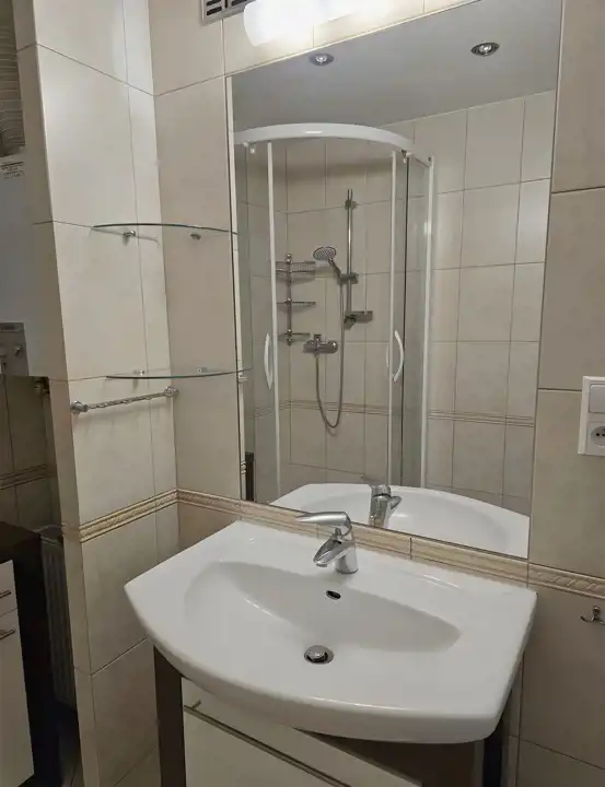 Kuchnia i łazienka w pełni urządzone i wyposażone.