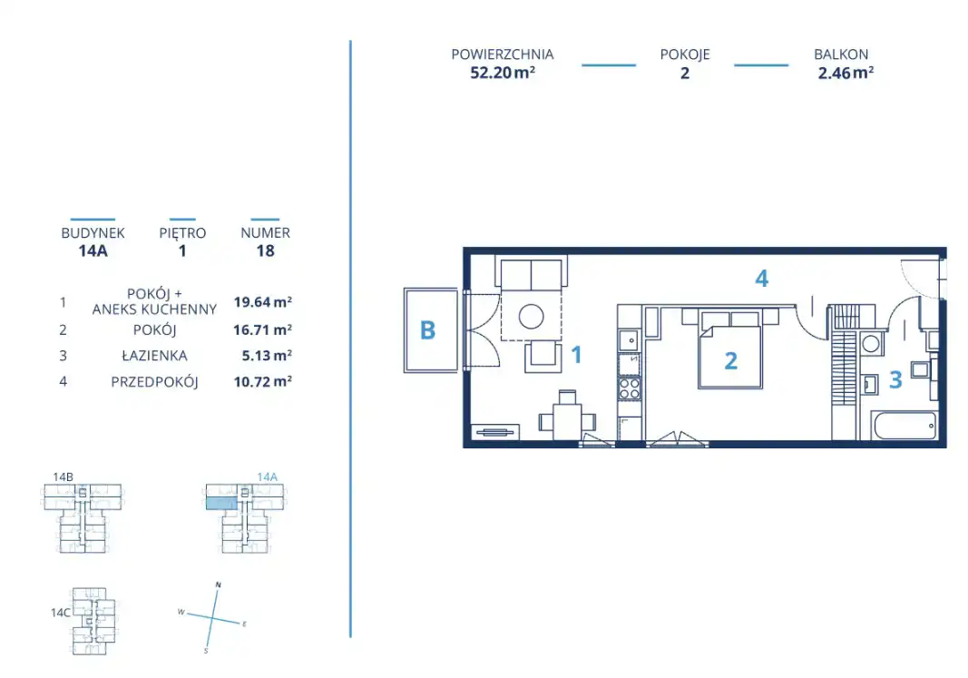 - Charakterystyka mieszkania 52.2 m2, 2 pokoje