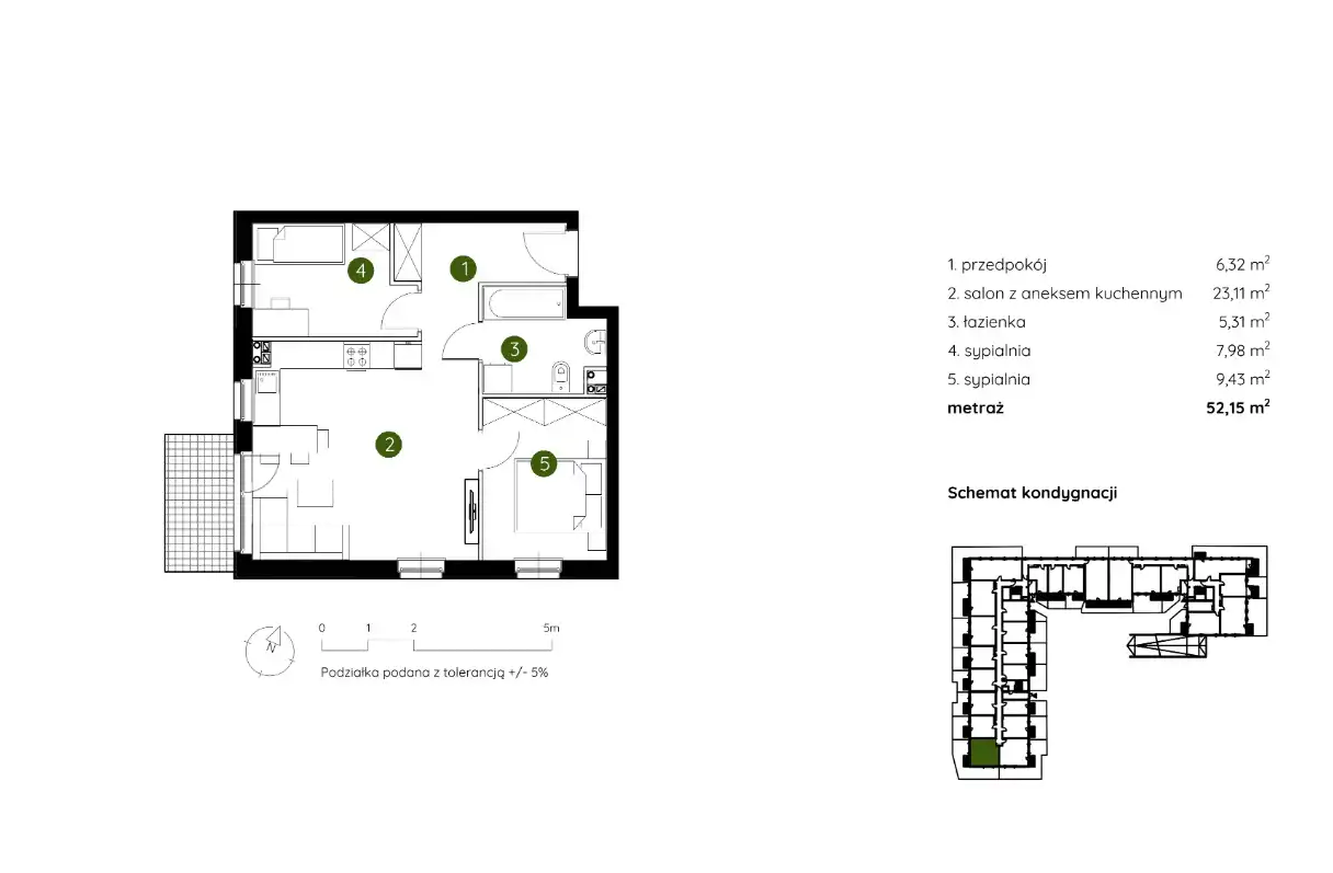 - Charakterystyka mieszkania 52.15 m2, 3 pokoje