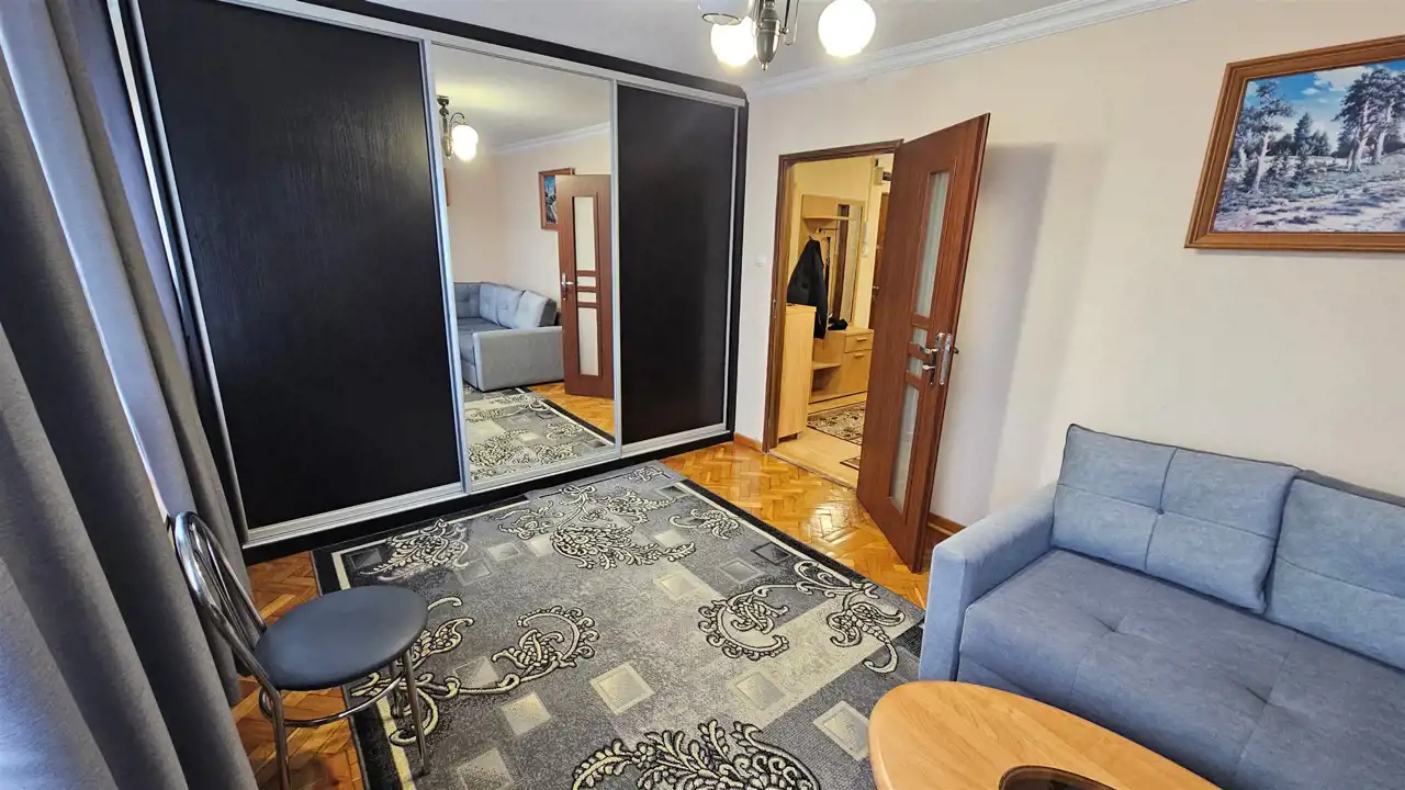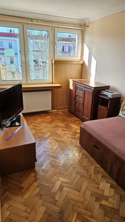 Mieszkanie słoneczne, przytulne, umeblowane i wyposażone, w pokojach zabudowane szafy, garderoby, kuchnia wyposażona w meble, lodówkę, zamrażarkę, kuchenkę gazową, w łazience kabina prysznicowa oraz pralka.