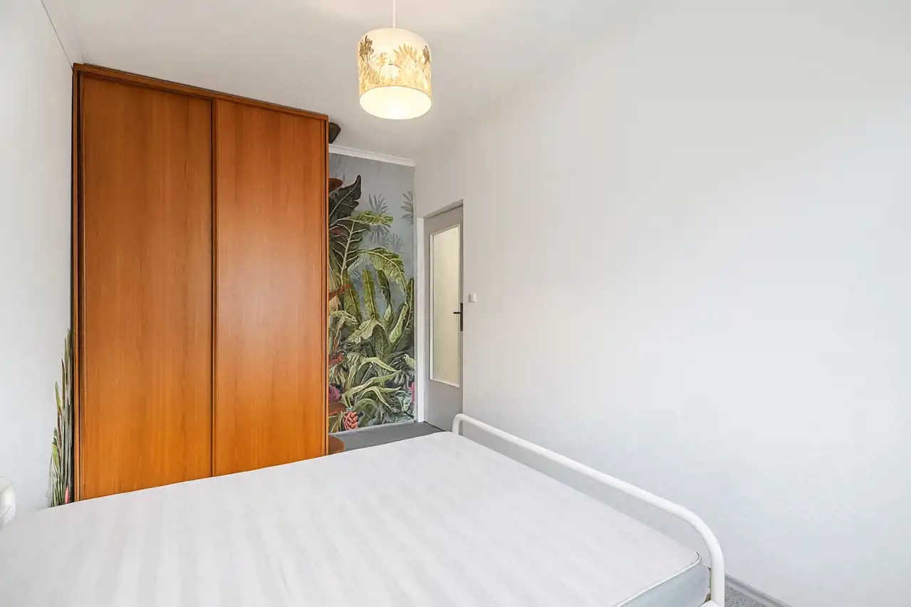 W sypialni znajduje się duża szafa, kuchnia wyposażona jest w sprzęty i meble kuchenne. W łazience jest kabina prysznicowa, ale jest wystarczająco miejsca by zamontować zamiast niej wannę. W mieszkaniu nie ma pralki.